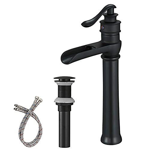 Professional reviews from industry experts Greenspring Vessel Sink Faucet Matte Black Single Hole Waterfall Single Handle Farmhouse Lavatory Commercial Bath Vanity Bowl Bathroom Faucet with Pop Up Drain Without Overflow Supply Line